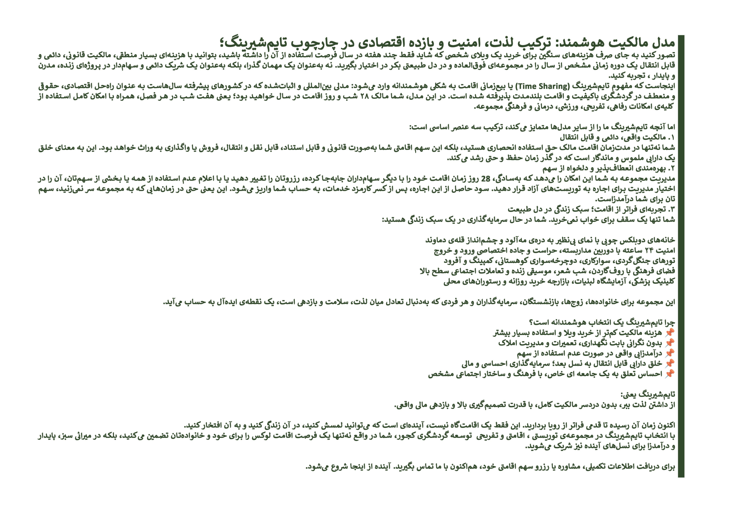 مزیتهای اقتصادی خرید و رزرو تایم شیرینگ کجور